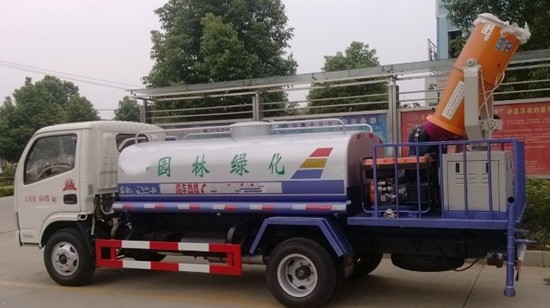 车辆安装工作平台、洒水枪、前冲、后洒、侧喷,消防接口等,一车多用,可作绿化洒水车傅,也可选 装消防泵、消防炮等作应急水罐消防车使用。