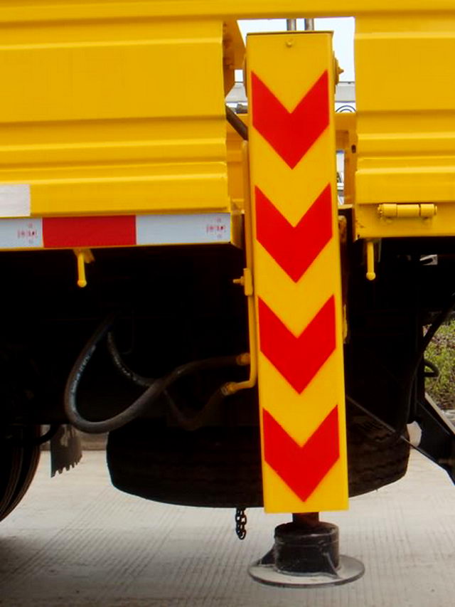 随底盘选装驾驶室;选装后部支腿;侧面防护及后下部防护装置材料材质:Q235,侧面防护及后下部防护装置连接方式:螺栓连接,后下部防护装置断面尺寸(宽×高):30×100(mm),离地高度:540mm. |